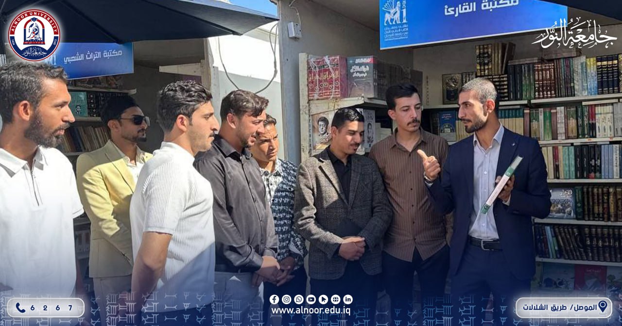 نظمت شعبة النشاط الثقافي في قسم النشاطات الطلابية بجامعة النور بالتعاون مع قسم اللغة العربية في كلية التربية صباح يوم الأربعاء الموافق 29 تشرين الأول 2025 زيارة علمية وثقافية إلى معرض الكتاب الدولي المقام في جامعة الموصل، بمشاركة مجموعة من طلبة القسم وتدريسييهم.