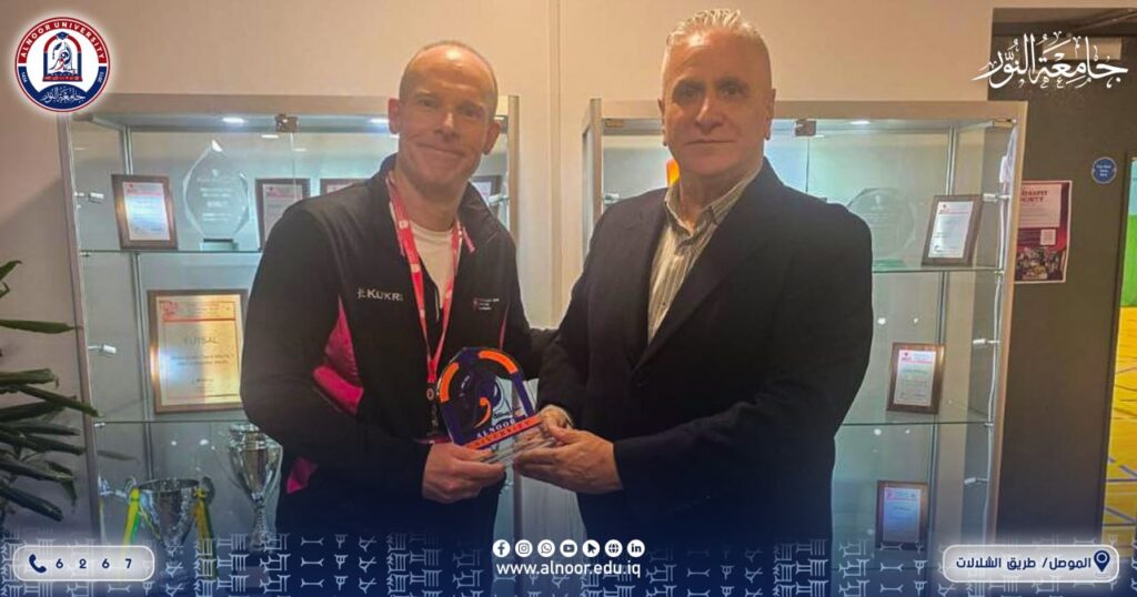 التقى الأستاذ الدكتور ناظم شاكر الوتار رئيس قسم التربية البدنية وعلوم الرياضة في كلية التربية بجامعة النور بالبروفيسور Chris Harwood مدير مركز أبحاث الرياضة والصحة وتحسين الأداء (SHAPE) في جامعة نوتنغهام ترينت بالمملكة المتحدة وذلك في إطار تعزيز آفاق التعاون الأكاديمي الدولي وتطوير الشراكات البحثية لقسم التربية البدنية وعلوم الرياضة. وجرى خلال اللقاء بحث سبل التعاون في مجال البحث العلمي المشترك وتبادل الخبرات الأكاديمية وتفعيل قنوات التواصل الإيجابي بما يسهم في الارتقاء بمستوى البحث العلمي في مجالات التربية البدنية وعلوم الرياضة. وتناول اللقاء أيضًا البحث في إمكانية إتاحة فرص دراسية لخريجي قسم التربية البدنية وعلوم الرياضة من جامعة النور للالتحاق ببرامج الدراسات العليا في جامعة نوتنغهام ترينت في المستقبل بما يعزز بناء القدرات الأكاديمية ويفتح آفاقًا دولية للطلبة المتميزين. ويأتي هذا اللقاء ضمن توجه جامعة النور نحو الانفتاح الأكاديمي الدولي وبناء شراكات استراتيجية فاعلة تخدم الطلبة والباحثين وتسهم في تحقيق التميز المؤسسي.