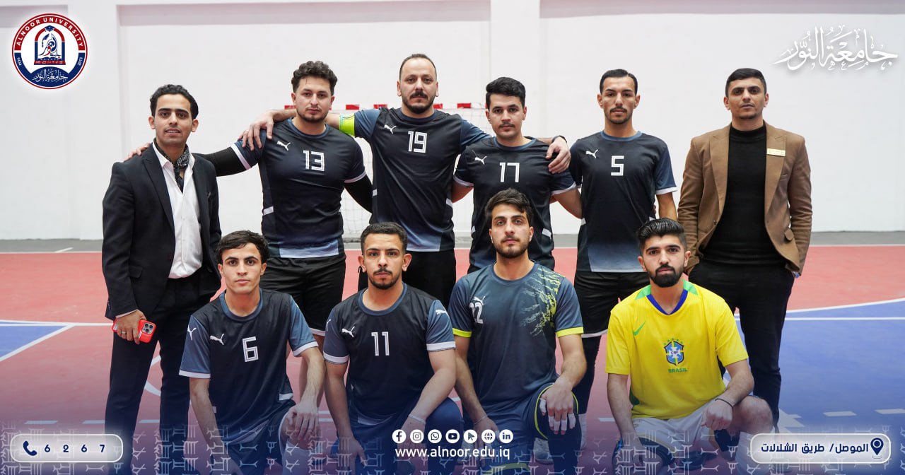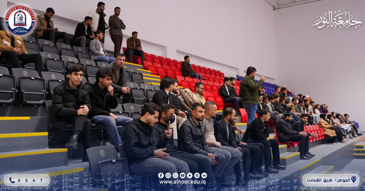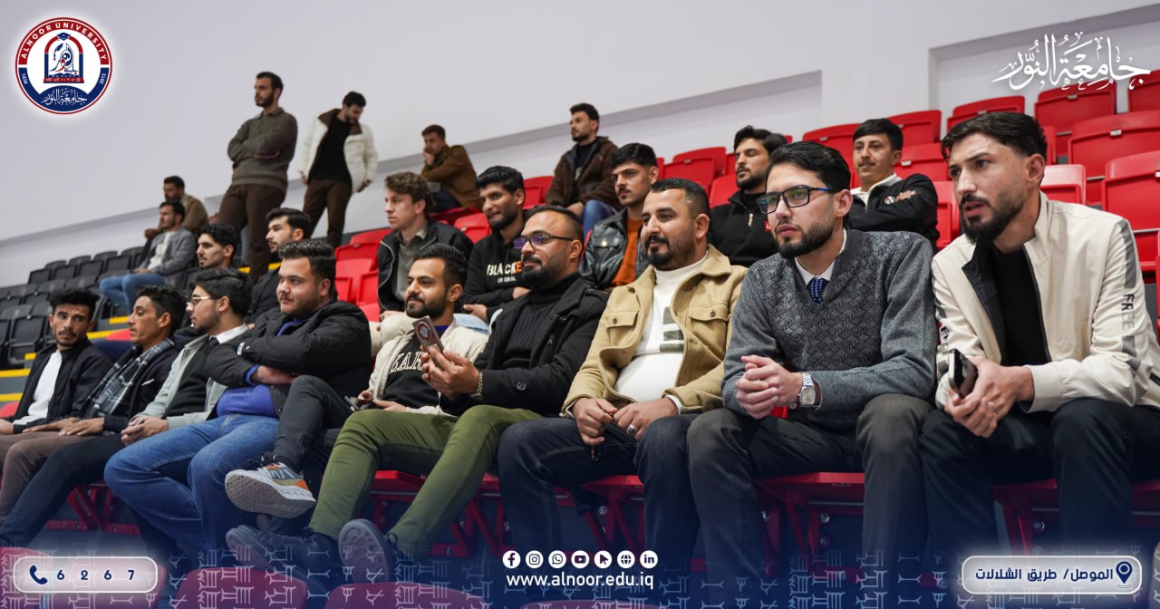 أقام قسم النشاطات الطلابية في جامعة النور من خلال وحدة الأنشطة الرياضية في كلية التقنيات الصحية والطبية بالتعاون مع قسم التربية البدنية وعلوم الرياضة في كلية التربية ، مباراة ودية جمعت بين قسمي تقنيات الأشعة وتقنيات التخدير وانتهت بفوز فريق قسم تقنيات التخدير في ضربات الجزاء اشرف على المباراة ايهاب يوسف امين. حيث شهد اللقاء أجواءً من الحماس ، وسط روح رياضية عالية بين الفريقين. ويأتي تنظيم هذه المباراة في إطار تعزيز الأنشطة الطلابية في الجامعة وتشجيع الطلبة على المشاركة في الانشطة التي تسهم في تنمية روح التعاون والعمل الجماعي بينهم.