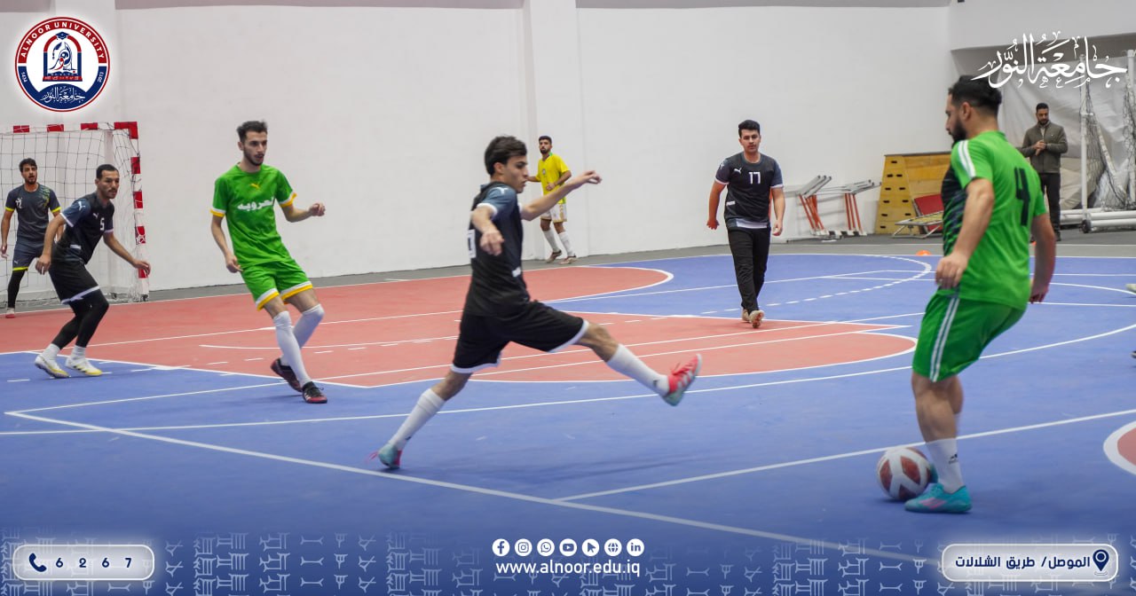 جامعة النور تقيم مباراة بكرة القدم الخماسية بين فريقين من طلبة اقسامها العلمية