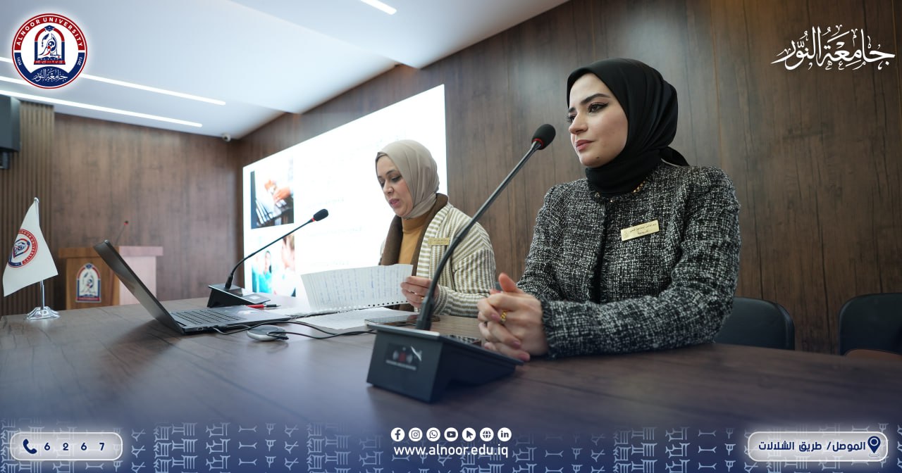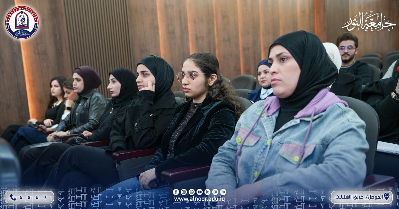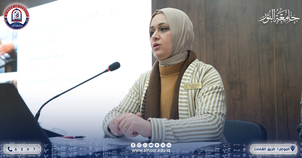 بحضور الاستاذ الدكتور ياسين طه الحجار رئيس جامعة النور ،وإشراف الاستاذ الدكتور خزعل فتحي زيدان عميد كلية التربية نظم قسم اللغة الإنكليزية في الكلية صباح يوم الأربعاء الموافق 11 آذار 2026 ورشة علمية بعنوان (مشاكل ترجمة التكرار الفائض في اللغة الإنكليزية إلى اللغة العربية بين الطلبة). أدارت الورشة المدرسة المساعدة آية علي حسن، وتحدثت فيها كلٌّ من الدكتورة أسماء يحيى قاسم والمدرسة المساعدة إيناس إسماعيل فتحي، حيث تناولتا أبرز الصعوبات التي يواجهها الطلبة عند ترجمة ظاهرة التكرار الفائض من اللغة الإنكليزية إلى العربية، وبيان الفروق الأسلوبية بين اللغتين وكيفية التعامل مع التكرار بما يحقق الدقة والوضوح في المعنى.حضر الورشة المستشار العلمي للجامعة وعدد من رؤساء الاقسام الورشة تطرقت ايضاً إلى مجموعة من الأمثلة التطبيقية والنصوص المترجمة، مع توضيح الأساليب الصحيحة لمعالجة هذا النوع من التكرار، بما يسهم في تنمية مهارات الطلبة في مجال الترجمة تحسين قدرتهم على نقل المعنى بصورة سليمة. وتعمل هذه الورشة على تأكيد أهمية مثل هذه النشاطات العلمية في تطوير مهارات الطلبة وتعزيز خبراتهم اللغوية والترجمية.