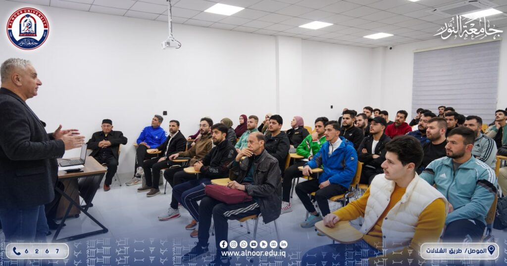 نظم قسم التربية البدنية وعلوم الرياضة في كلية التربية بجامعة النور صباح يوم السبت الموافق 14 شباط 2026 محاضرة